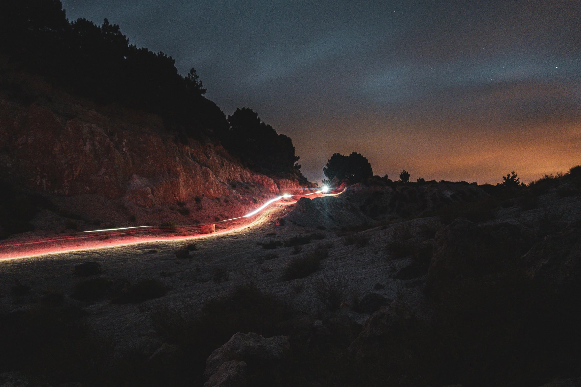 Cycling at night on an unfamiliar road triggers primitive sensory mechanisms. Sight, smell, hearing perceive signals in a more precise, punctual, almost surprising way. The road climbs leaving the city lights behind, the temperature drops, the slope increases. Past the villages of Sudar and Quentar, the road surface becomes rougher and rougher, and the road climbs steeply and mercilessly. At times one is forced to get off the bike and push.